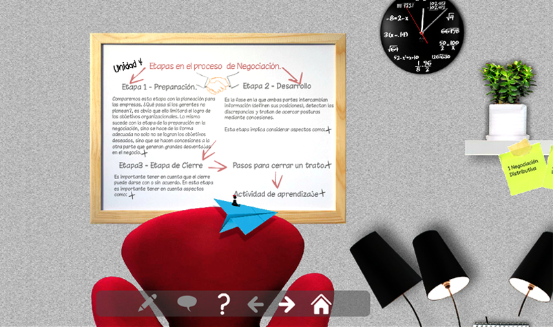 There are shown processes about how different theories and techniques of negotiations intertwine to facilitate the learning process. This is streghten by the conversations between the character and his pilot.